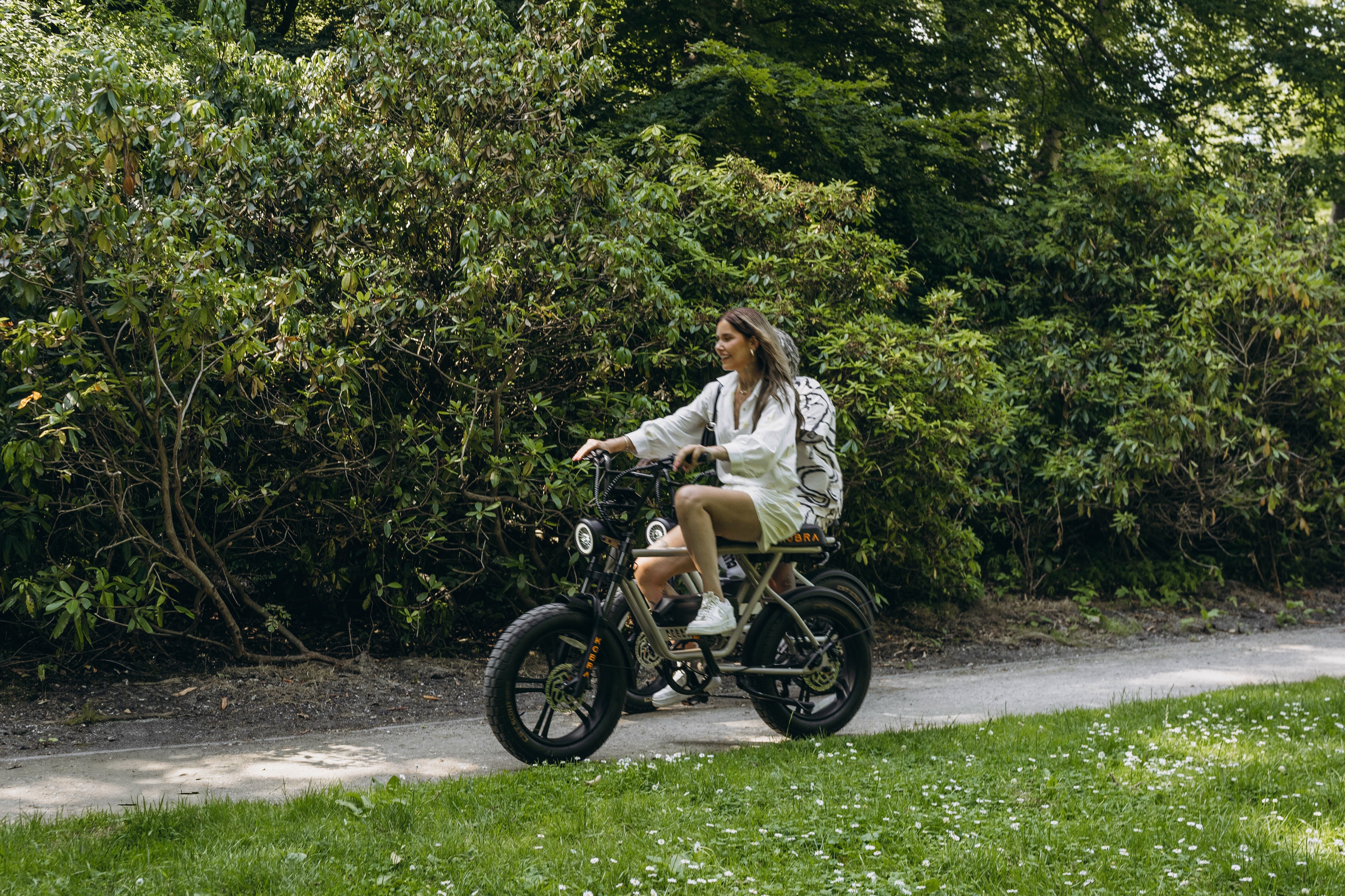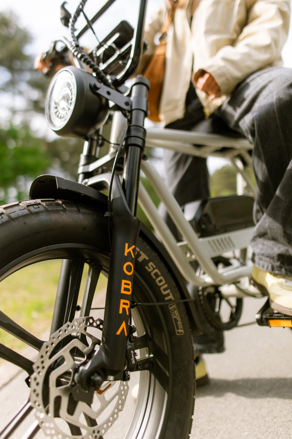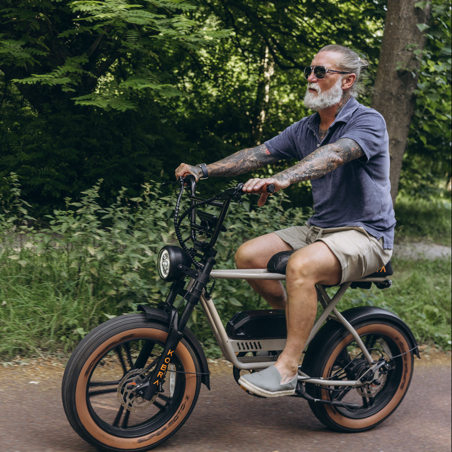 La Fatbike con la experiencia de conducción definitiva. Esto es en lo que destaca la Kobra. La KOBRA Fatbike ofrece esta sensación única gracias a su innovador diseño y tecnología. La suspensión adaptativa asegura una conducción suave en cualquier terreno, mientras que el robusto cuadro garantiza estabilidad y durabilidad. La exclusiva tecnología de propulsión garantiza una experiencia de conducción potente y eficiente. Con unos neumáticos aptos para la calle, disfrutarás de un agarre silencioso y comodidad tanto en asfalto como en caminos de tierra. El lujoso sillín ofrece una comodidad extra, haciendo de cada paseo una experiencia agradable. La KOBRA Fatbike combina rendimiento y lujo para una experiencia de conducción sin igual.