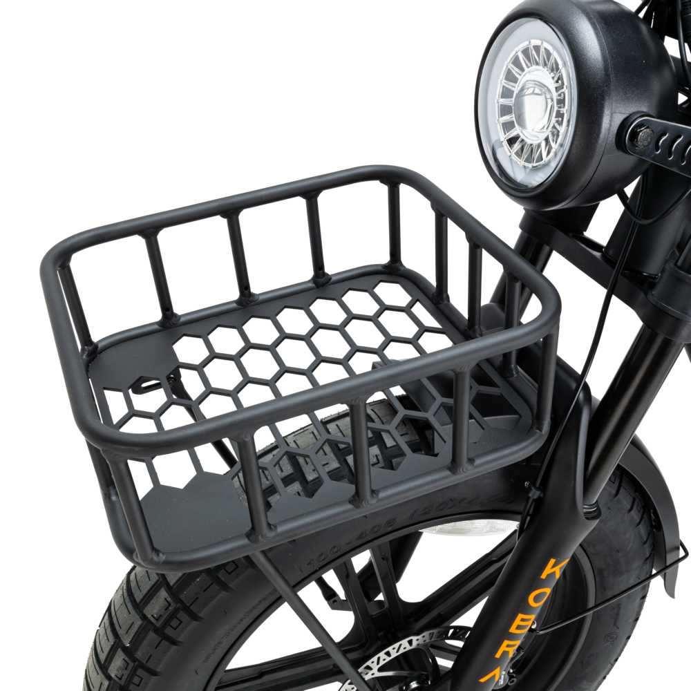 KOBRA Un accesorio que no debe faltar es la cesta delantera. KOBRA La cesta, de bonito diseño, facilita llevar algunas cosas contigo. Muy práctica, sobre todo si no puedes llevar una mochila cuando hay alguien sentado detrás de ti. La cesta es de acero y es fácil de montar usted mismo o por uno de nuestros especialistas. Si decides hacerlo tú mismo, ¡no olvides ajustar la luz delantera en la posición más alta!
